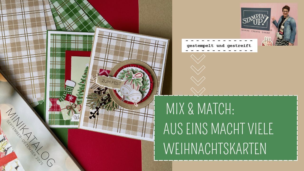 So habe ich diese wunderschönen Karten im schottischem Karo-Stil genommen und einfach kombiniert: einerseits mit Motiven aus den Mix & Match Sets, aber auch mit Stanzformen aus Produktpaketen und dem fantastischen Duo-Farbkarton!