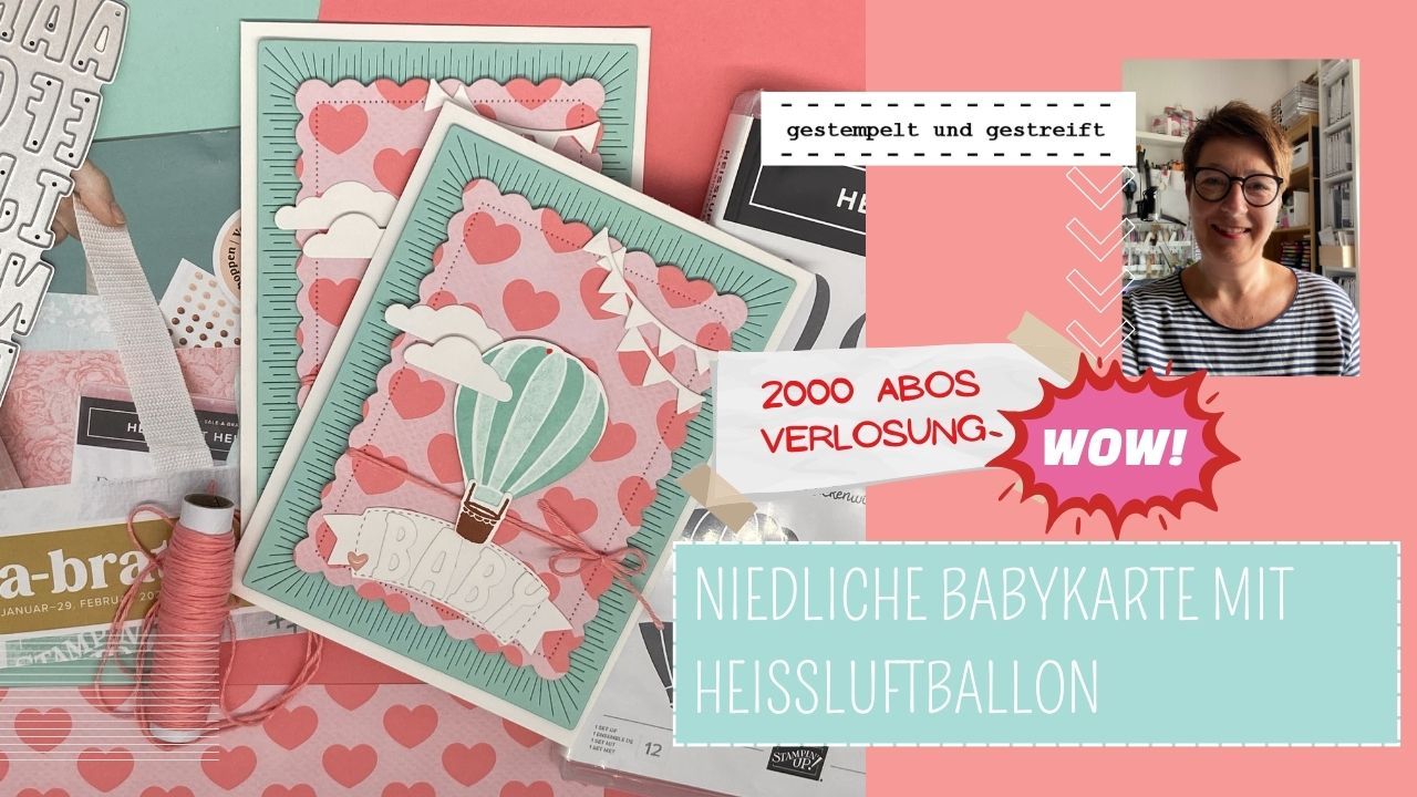 Heute habe ich eine ganz liebe Stempelschwester besucht, die vor kurzem einen zuckersüßen Sohn bekommen hat. Das hat mich zu dieser niedlichen Babykarte inspiriert! Dafür habe ich das tolle Set "Heissluftballon" kombiniert mit einer superschönen Designerpapier, das Du Dir schenken lassen kannst!