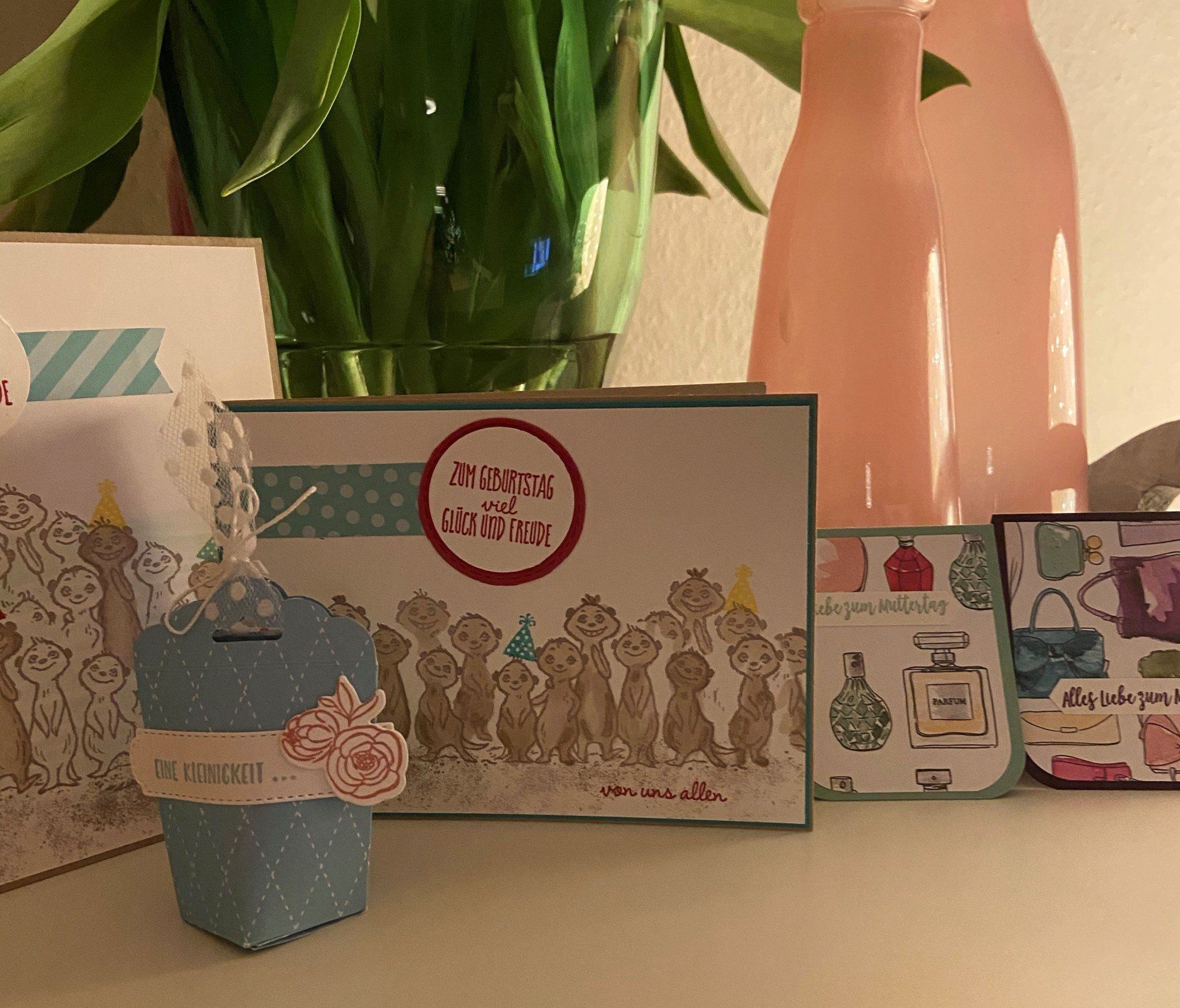Ehrlich gesagt, mit 15 Mädchen war es schon eine Herausforderung, aber es hat alles super geklappt. Ich habe drei Projekte vorbereitet: da durfte eine Karte mit den niedlichen Erdmännchen (#152760 Von uns allen